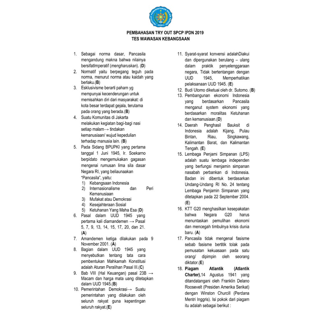 Sejak tahun 2016 pendafatan taruna / mahasiswa baru ipdn dilakukan terintegrasi melalui pansel menpan. Download soal cpns 2021 2022 kunci jawaban cat dan pdf lengkap kunci dari kelulusan tes cpns adalah keberhasilan dari menjawab soal soal tes cat cpns yang diujikan dan dari soal yang berjumlah 100 butir tersebut semuanya dalam bentuk pilihan ganda dengan 4 pilihan jawaban. Contoh soal cpns test calon praja ipdn di jatinangor part qwerty. Tetapi agar bisa diterima di ipdn tentunya tidak semudah membalik telapak tangan, butuh persiapan baik fisik maupun mental. Tetapi agar bisa diterima di ipdn tentunya tidak semudah membalik telapak tangan, butuh persiapan baik fisik maupun mental. 20210324 soal ipdn 2017 soal ipdn 2015 2016 soal ipdn 2017 pdf soal ipdn 2018 pdf dan prediksi 2019 pembahasan. Soal latihan dan pembahasan tes cpns tahun 20212022 twk tiu dan tkp pdf. Tetapi agar bisa diterima di ipdn tentunya tidak semudah membalik telapak tangan, butuh persiapan baik fisik maupun mental. 34 full pdfs related to this paper. Download soal psikotes ipdn pdf. Disini saya akan khusus membahas tentang tes seleksi masuk ipdn tahun 2018, silahkan anda baca dengan teliti dan semoga tulisan ini bisa menjadi referensi bagi anda semua. Full strategi lolos tes cpns 5 departemen. Seleksi kompetensi dasar atau skd sistem cat berupa materi pdf termasuk …